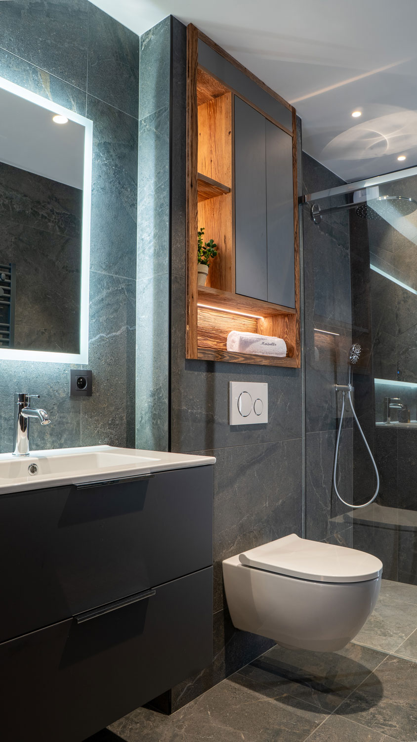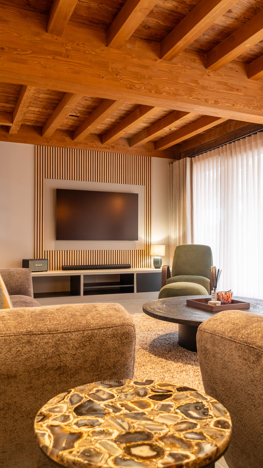 Throughout the chalet, bespoke elements were thoughtfully integrated to enhance both the experience of the space and its overall identity. Each detail was carefully considered, ensuring that the interiors feel seamless, refined, and entirely in tune with the architecture.