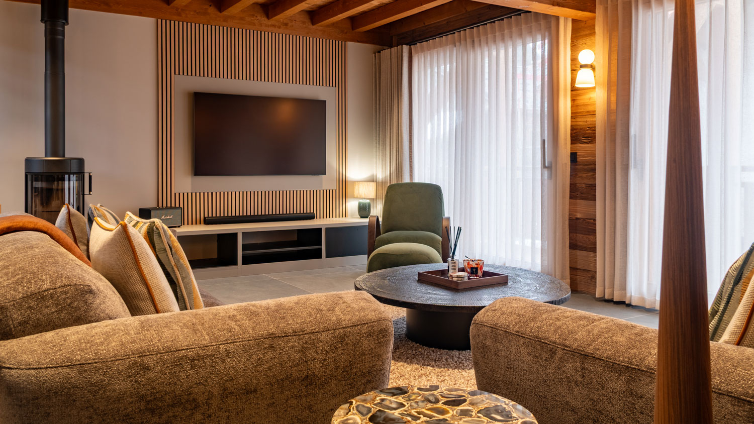 This project gave us the opportunity to shape a new-build luxury chalet from the outset, working closely with a wonderful family who placed a great deal of trust in our vision. From the beginning, the relationship felt collaborative and open, and their willingness to let us gently push their boundaries allowed the design to evolve into something more elevated and considered than initially imagined.